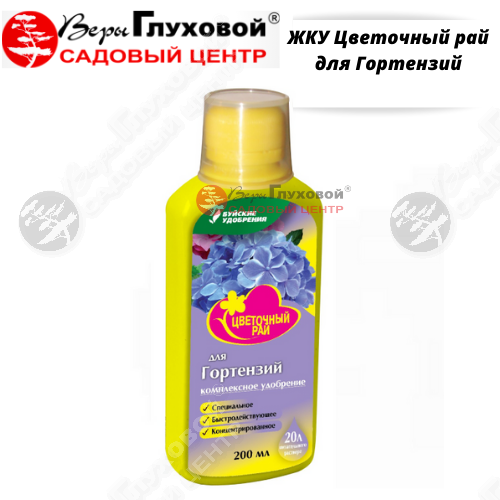 Специальное быстродействующее концентрированное комплексное жидкое удобрение для питания гортензий.